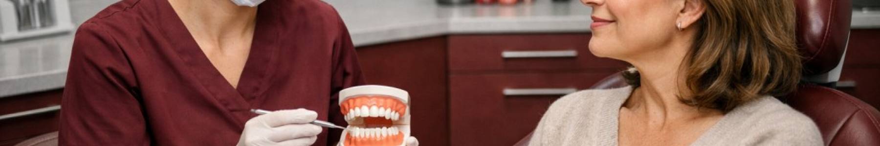 Menopauza, potocznie nazywana przekwitaniem, to okres stopniowego zmniejszania produkcji estrogenów i progesteronu. Skutkiem jest ustanie miesiączkowania i utrata płodności, ale także wiele innych zmian: od obniżonego libido i wahań nastroju, przez przyrost tkanki tłuszczowej w okolicy talii, aż po zwiększone ryzyko chorób serca i osteoporozy. Ta ostatnia, wraz z innymi skutkami menopauzy, sprawia, że szczególną troską należy otoczyć zęby i dziąsła.